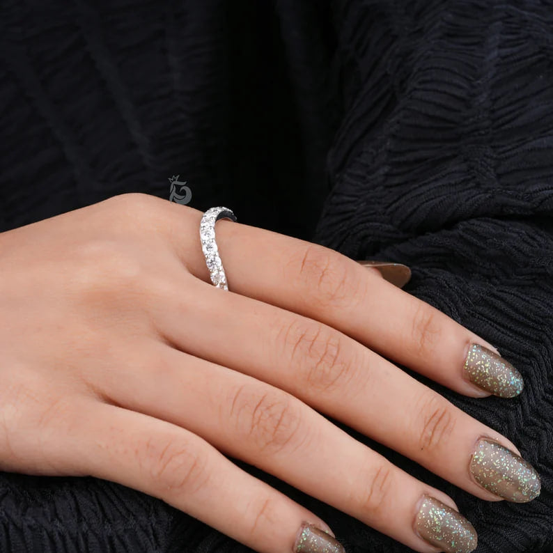 Curved Wedding Band,1.07 TCW Round Moissanite Half Eternity Wedding Band, 14k white gold Stackable Band, Anniversary Gift for her, Bridal Set,18K Yellow Gold Proposal art deco Style Ring for her, gold wedding band women, white gold wedding band, wedding band for women, wedding band set, wedding, engagement ring, promise ring, moissanite ring, 14k gold ring, rings, art deco ring, promise ring for her, handmade ring, diamond wedding ring, engagement gift