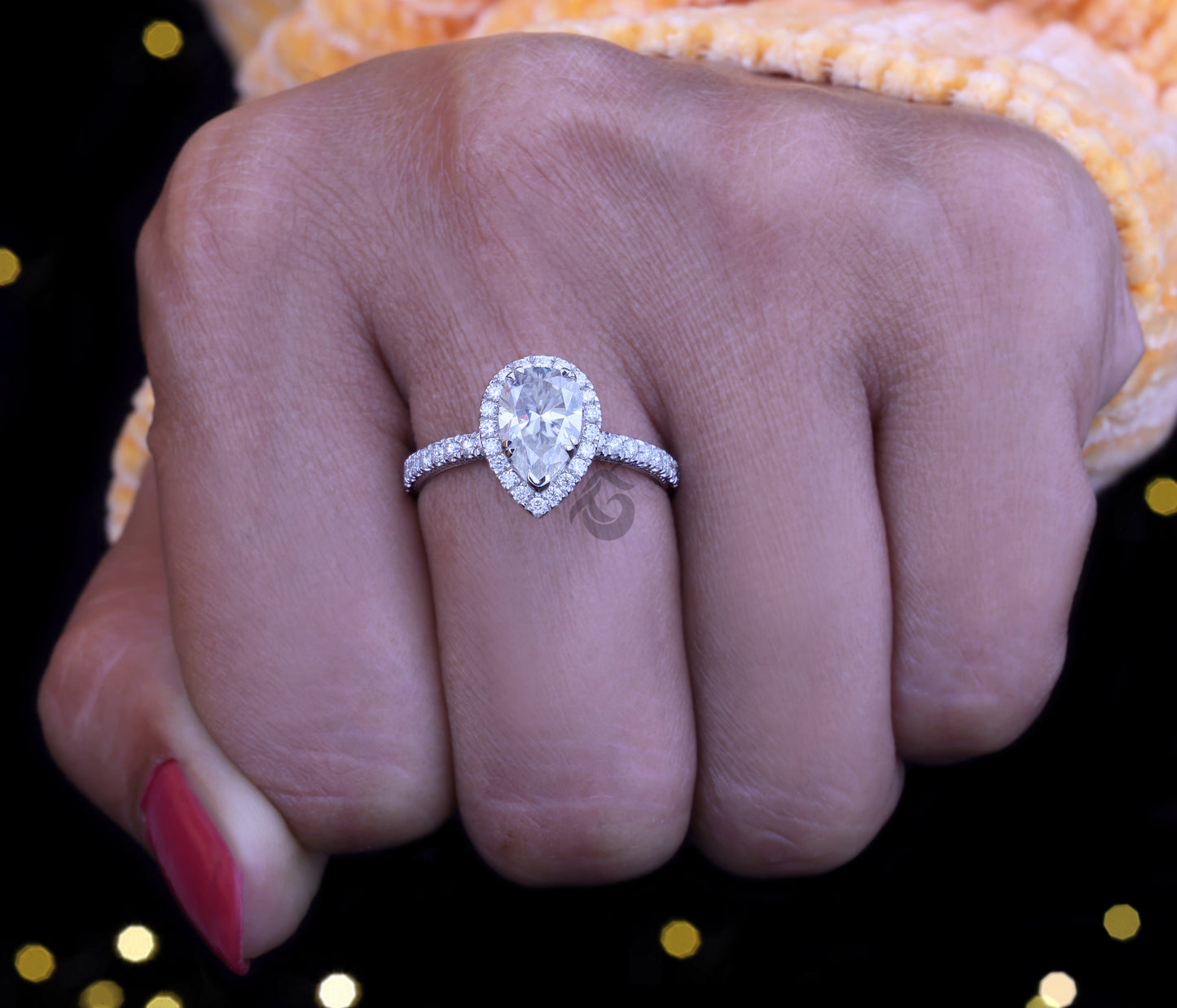 1.20CT Pear Cut Moissanite Diamond Engagement Ring,14K Mil grain Halo Pave Setting Ring Best Gift For Her, Vintage Style peekaboo Ring, wedding band, moissanite wedding band, gold wedding band, gold wedding band women, white gold wedding band, wedding band women, wedding band set, wedding, engagement ring, promise ring, moissanite ring, 14k gold ring, rings, art deco ring, promise ring for her, handmade ring, diamond wedding ring, engagement gift