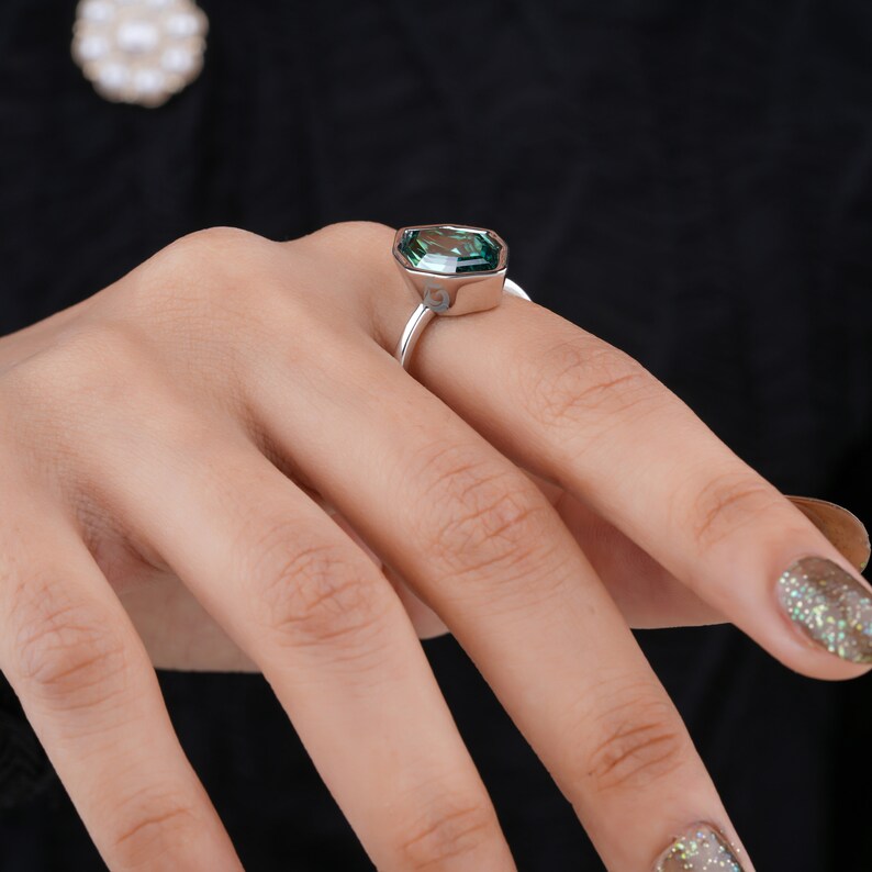 Dutch Step cut Greenish blue Moissanite Engagement Ring,2.30CT Bezel Set Solitaire Wedding Ring,18k White Gold Anniversary Ring Gift for Her, wedding band women, wedding band set, wedding, engagement ring, promise ring, moissanite ring, 14k gold ring, rings, art deco ring, promise ring for her, handmade ring, diamond wedding ring, engagement gift