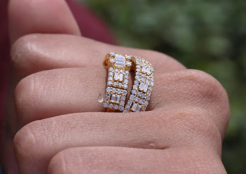 Elegant Moissanite Couple Ring Wedding Band Set – This stunning 2-piece set is a perfect blend of classic and contemporary, featuring baguette and round-cut moissanite stones. Thoughtfully designed for couples, these rings are available in high-quality metal options, including silver, white gold, yellow gold, rose gold, and platinum, allowing you to choose the perfect match for your style.