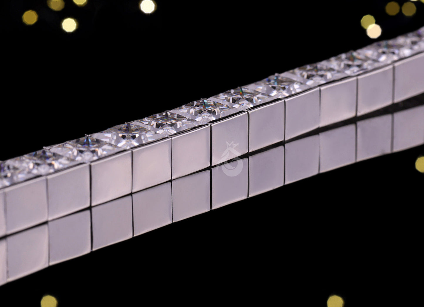 7MM Princess Moissanite Bracelet, Tennis Anniversary Bracelet,10KSolid Gold Engagement Bracelet, Half Bezel Set Moissanite Wedding Bracelet