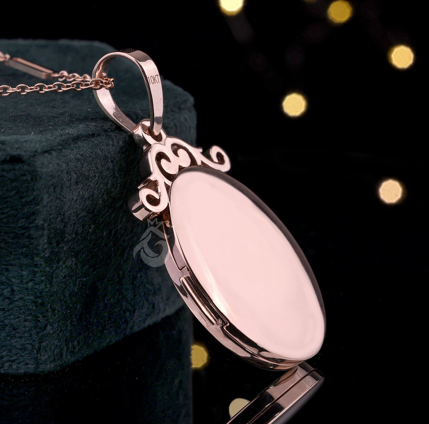 Grey moissanite Art deco style Photo holder love symbol pendent,10K solid rose gold Victorian custom pendent,1920 antique locket for her