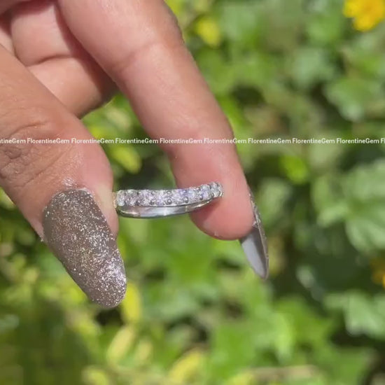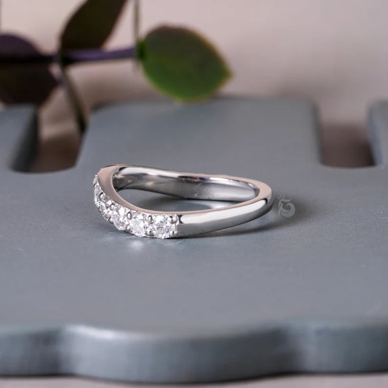 Curved Wedding Band,1.07 TCW Round Moissanite Half Eternity Wedding Band, 14k white gold Stackable Band, Anniversary Gift for her, Bridal Set,18K Yellow Gold Proposal art deco Style Ring for her, gold wedding band women, white gold wedding band, wedding band for women, wedding band set, wedding, engagement ring, promise ring, moissanite ring, 14k gold ring, rings, art deco ring, promise ring for her, handmade ring, diamond wedding ring, engagement gift