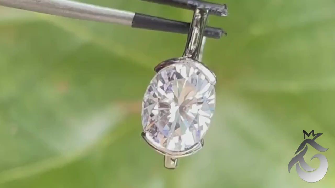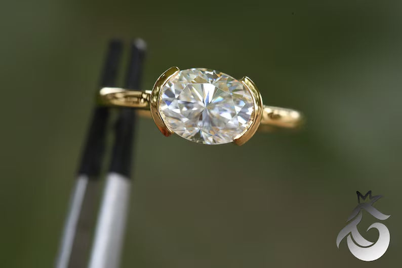 10x8mm Oval Cut Moissanite Engagement Ring in 10K/14K/18K White Gold, Half Bezel Set Solitaire.