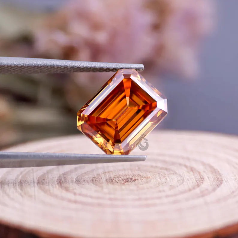 2.00 CT Fancy Orange Emerald Cut Moissanite, Loose Stone for Engagement Ring or Jewelry