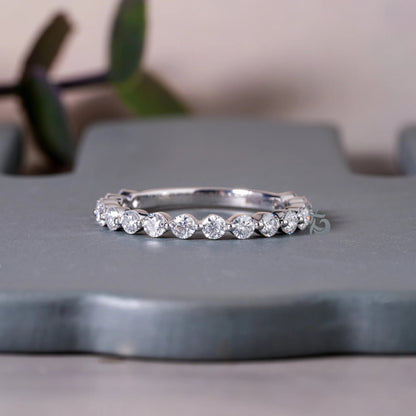 2.40MM Round Moissanite 3/4 Eternity Wedding Band, 10K Bubble Prong Stacking Ring for Her