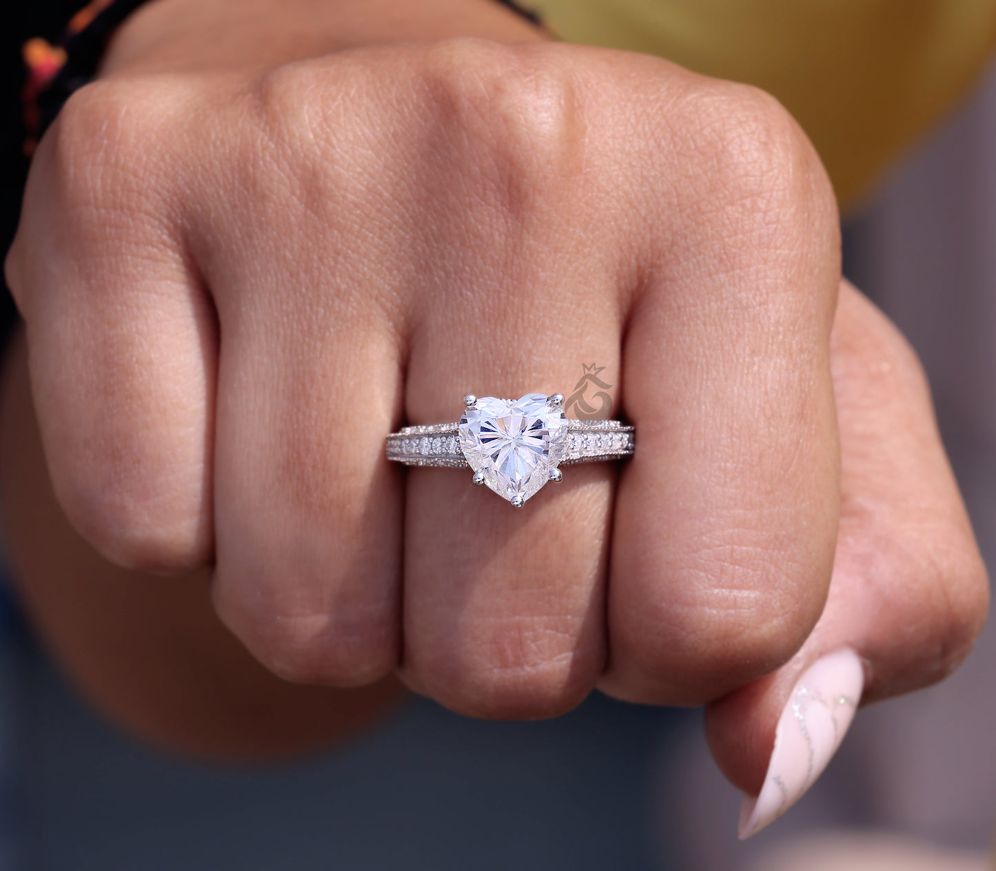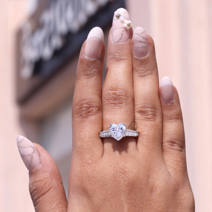2.58CT Heart Cut Moissanite Engagement Ring, Three-Sided Pave, 14K White Gold