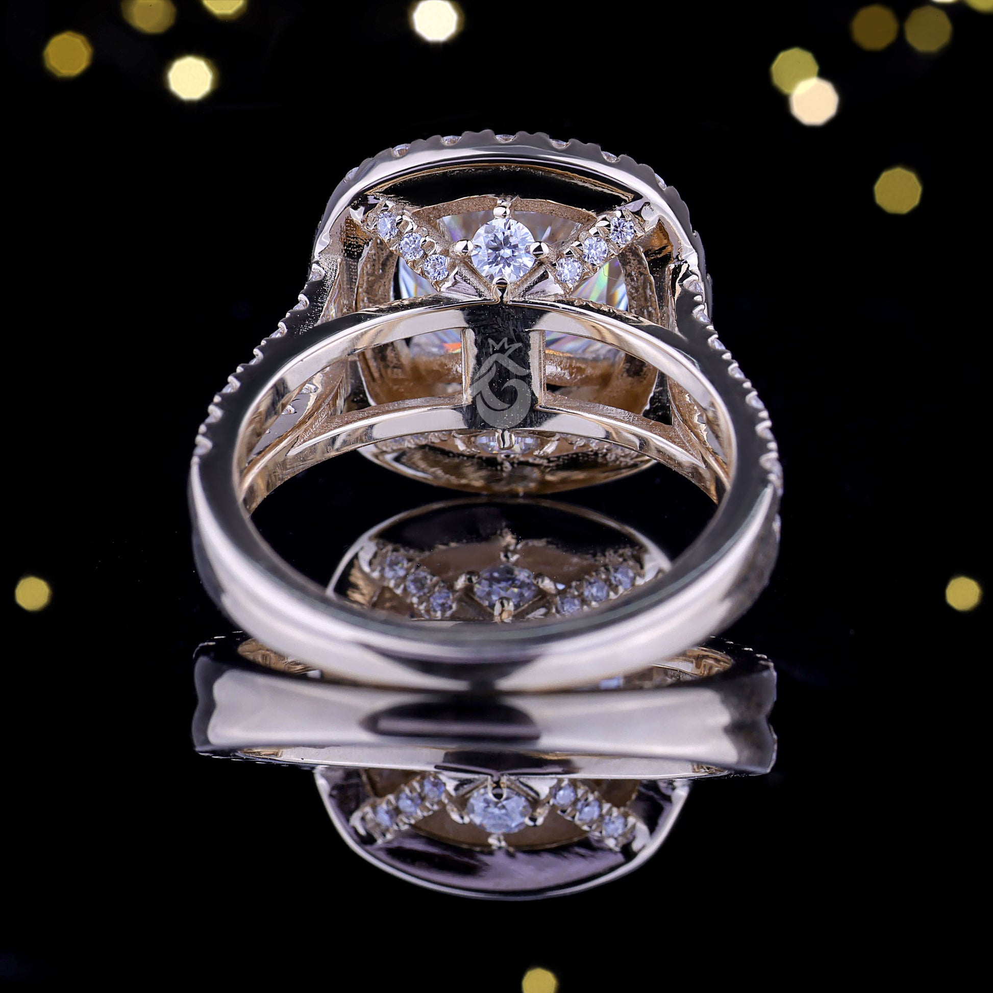 2.65 TW Cushion and Round Moissanite Ring, Halo Engagement Ring, Split Shank, Pave Stones,14K Gold Unique Wedding Ring, Anniversary Gift Women wedding band, moissanite wedding band, gold wedding band, gold wedding band women, white gold wedding band, wedding band women, wedding band set, wedding, engagement ring, promise ring, moissanite ring, 14k gold ring, rings, art deco ring, promise ring for her, handmade ring, diamond wedding ring, engagement gift