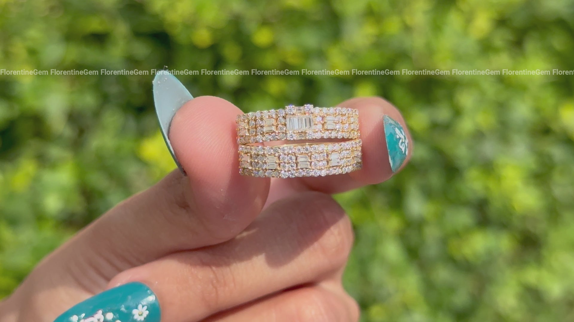 2PCS Baguette & Round Moissanite Wedding Band Set, Half Eternity Rings