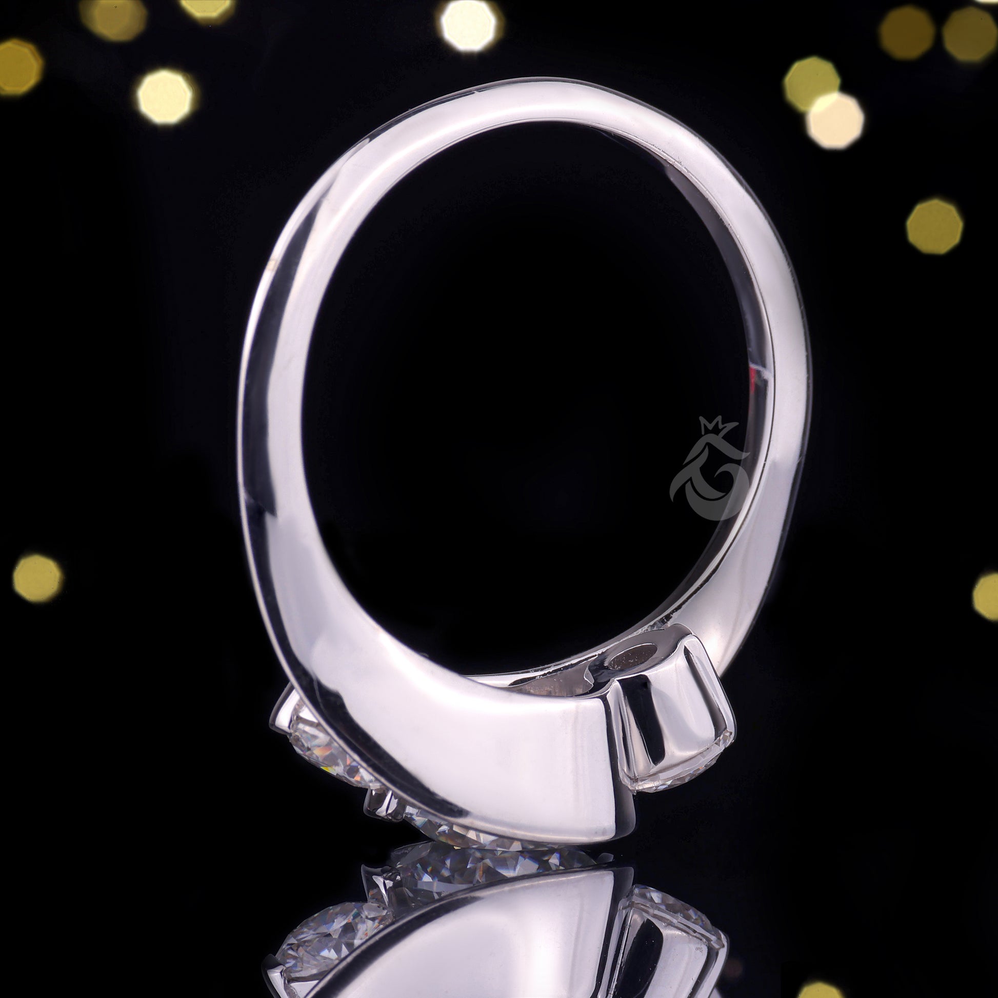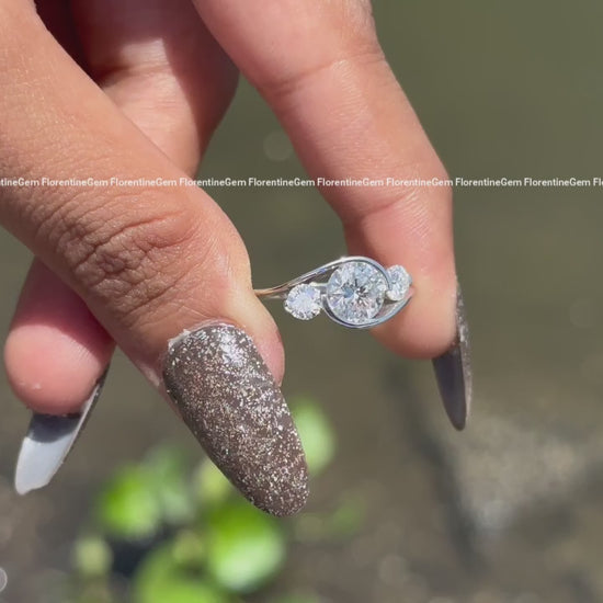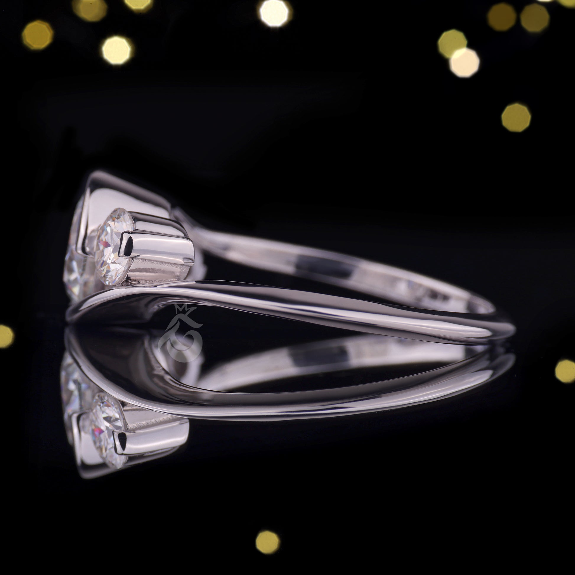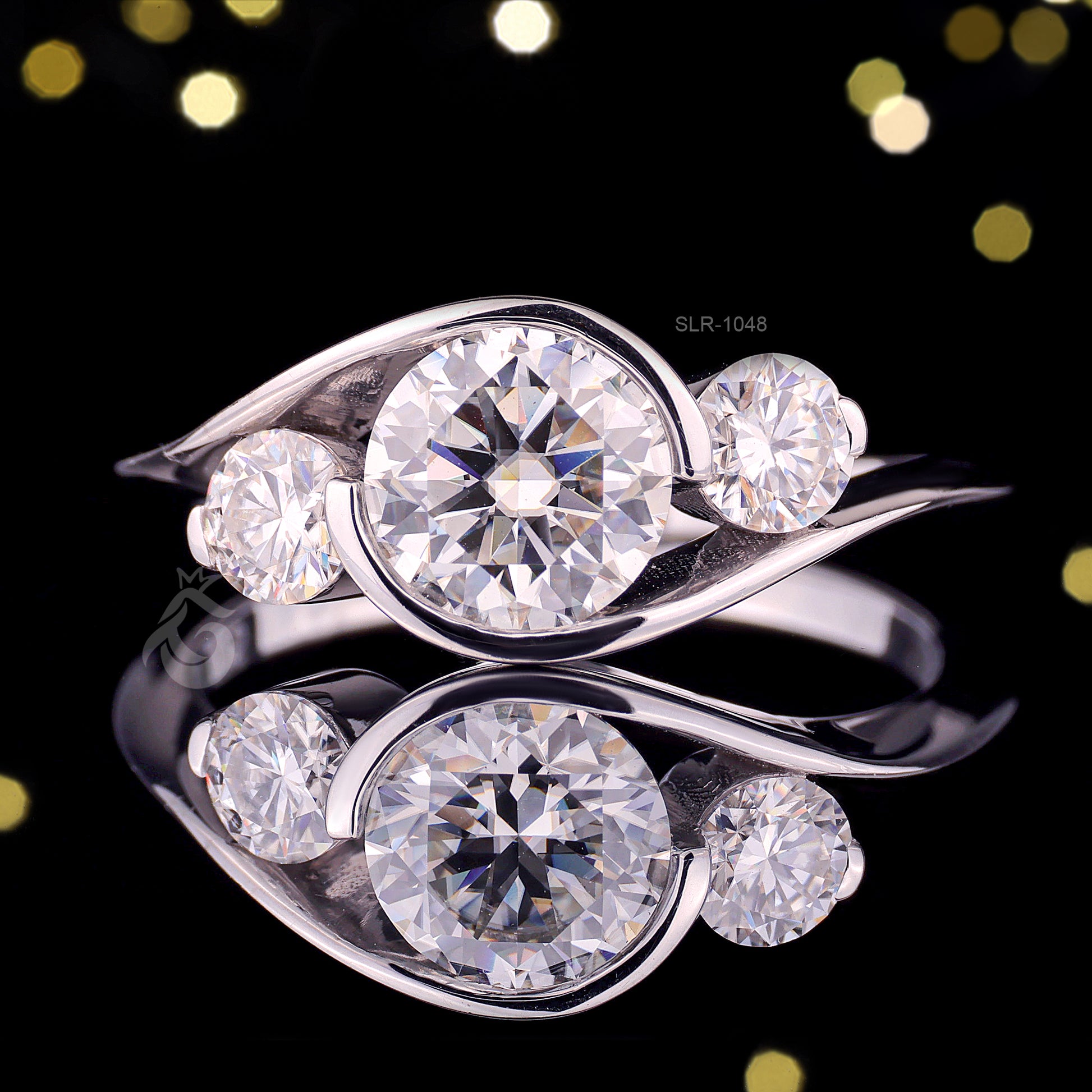 3-Stone Round Moissanite Engagement Ring – Tension Set Bypass Shank Wedding & Anniversary Ring