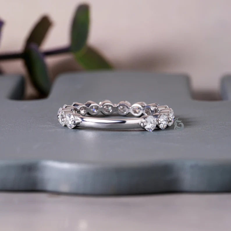 3MM Round Cut Colorless Moissanite Band, Floating Bubble Band, Shared Prong Band, Half Eternity Band, Matching Band For Women, Mother's Day gift, Proposal art deco Style Ring for her, gold wedding band women, white gold wedding band, wedding band for women, wedding band set, wedding, engagement ring, promise ring, moissanite ring, 14k gold ring, rings, art deco ring, promise ring for her, handmade ring, diamond wedding ring, engagement gift