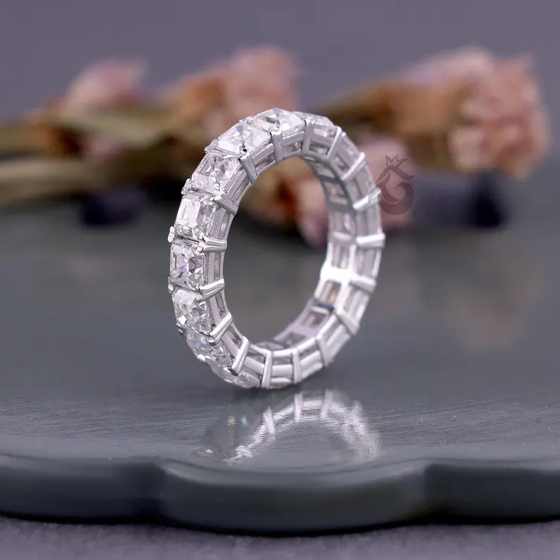 4.00MM Asscher Cut Moissanite Eternity Band, 14K White Gold Stacking Ring