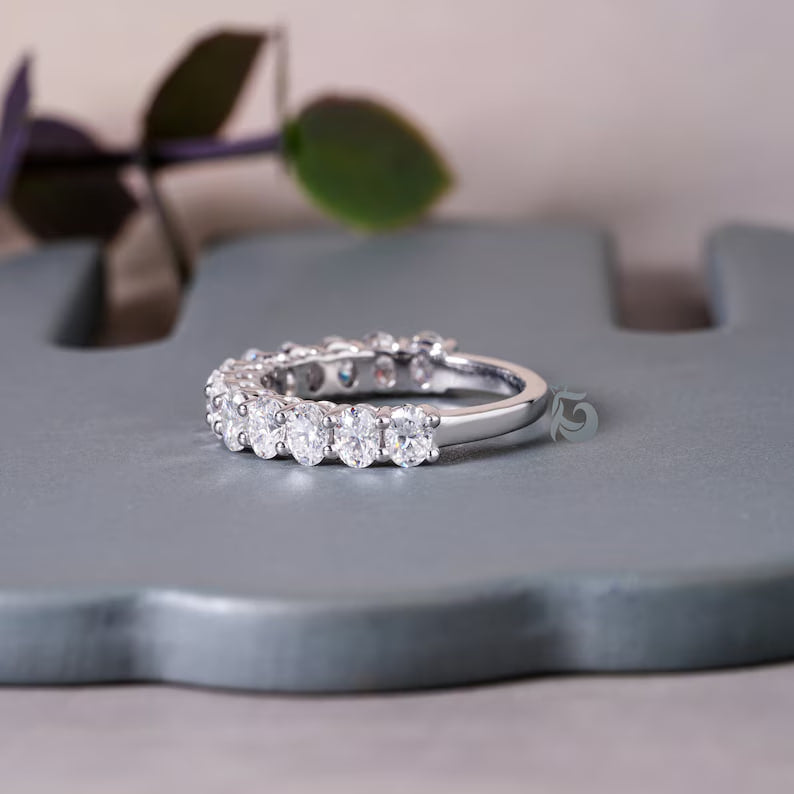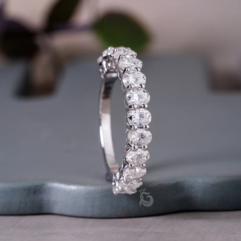 Oval Moissanite Band, Oval Eternity Band & Wedding Band,4x3mm Oval Cut Moissanite Wedding Band, White Gold Oval Half Eternity Women's Band white gold wedding band, wedding band women, wedding band set, wedding, engagement ring, promise ring, moissanite ring, 14k gold ring, rings, art deco ring, promise ring for her, handmade ring, diamond wedding ring, engagement gift