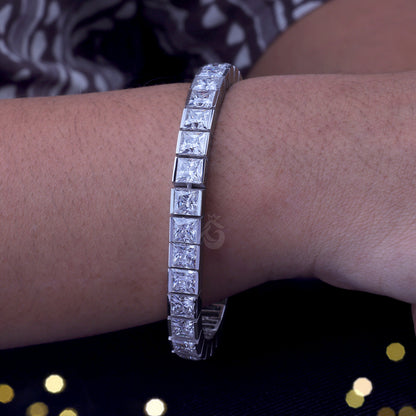 7MM Princess Moissanite Bracelet, Tennis Anniversary Bracelet,10KSolid Gold Engagement Bracelet, Half Bezel Set Moissanite Wedding Bracelet