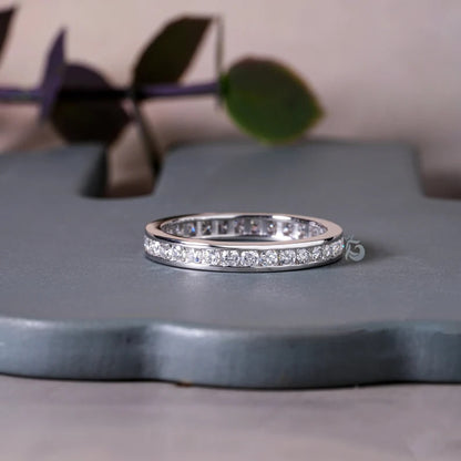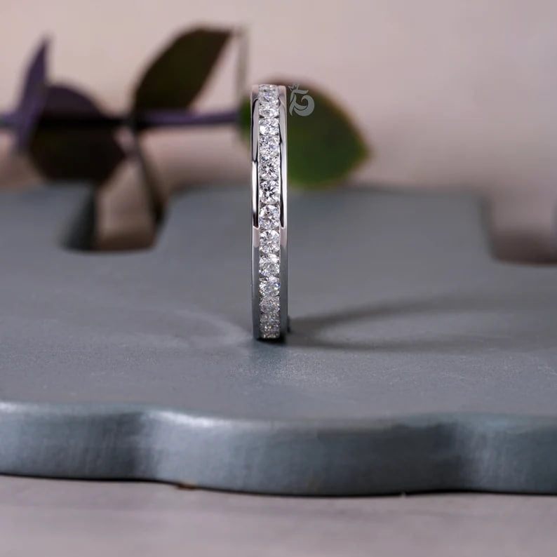 1.90MM Round Moissanite Full Eternity Band, Channel Set Wedding Ring