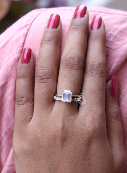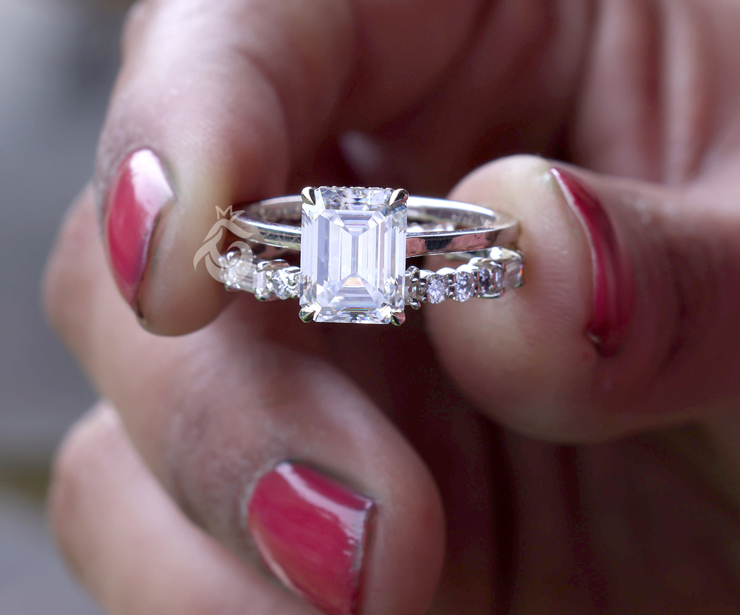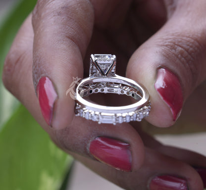 9x7mm Emerald Moissanite Engagement Ring Set, Baguette and Round Colorless Moissanite Full Eternity Band, Anniversary Ring, Hidden Halo Ring wedding band, moissanite wedding band, gold wedding band, gold wedding band women, white gold wedding band, wedding band women, wedding band set, wedding, engagement ring, promise ring, moissanite ring, 14k gold ring, rings, art deco ring, promise ring for her, handmade ring, diamond wedding ring, engagement gift