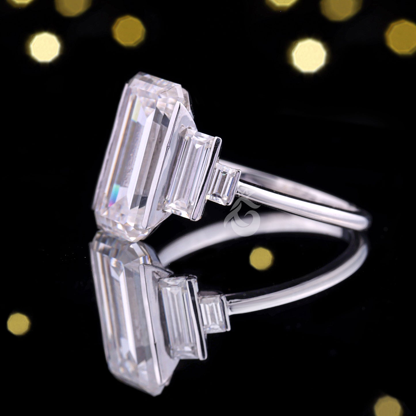 Antique Emerald Moissanite Engagement Ring,14K White Gold Anniversary Ring, Long Emerald & Baguette Five Stone Wedding Ring, Stacking Ring wedding band, moissanite wedding band, gold wedding band, gold wedding band women, white gold wedding band, wedding band women, wedding band set, wedding, engagement ring, promise ring, moissanite ring, 14k gold ring, rings, art deco ring, promise ring for her, handmade ring, diamond wedding ring, engagement gift