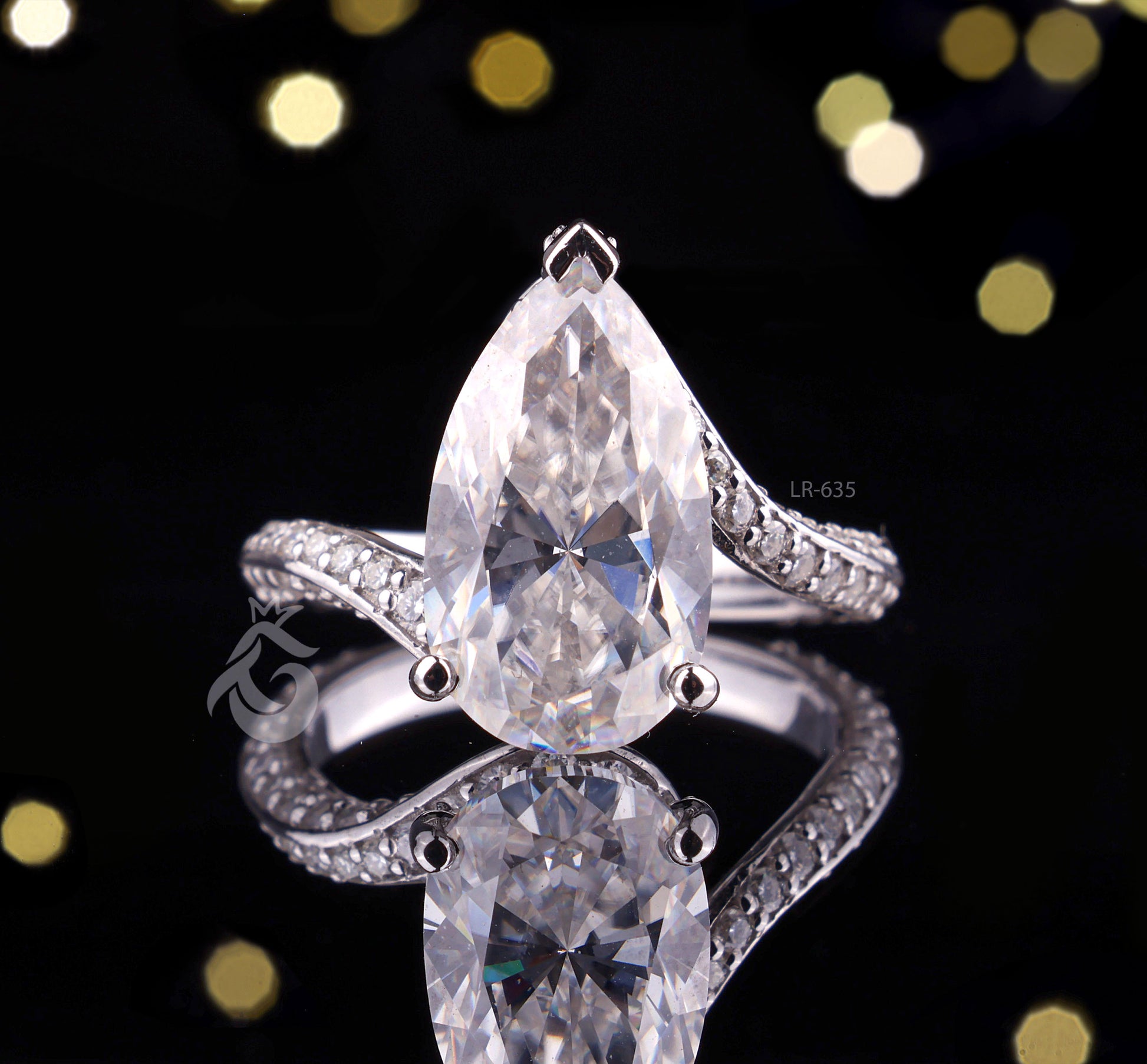 Bypass Style Pear Cut Moissanite Engagement Ring, 14x8 MM Teardrop Ring, 14K White Gold Proposal Ring