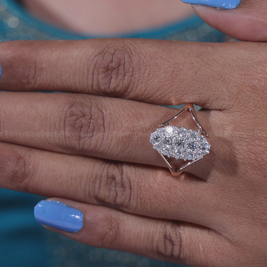 Celebrity Style Victorian Wedding Ring,1.15TCW OEC Round Moissanite Oval shape Cluster Engagement Ring, tow tone Customized Anniversary Ring wedding band, moissanite wedding band, gold wedding band, gold wedding band women, white gold wedding band, wedding band women, wedding band set, wedding, engagement ring, promise ring, moissanite ring, 14k gold ring, rings, art deco ring, promise ring for her, handmade ring, diamond wedding ring, engagement gift