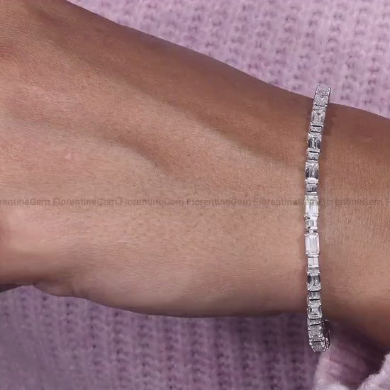 Dainty Baguette Moissanite Tennis Bracelet – 925 Silver Minimalist Jewelry
