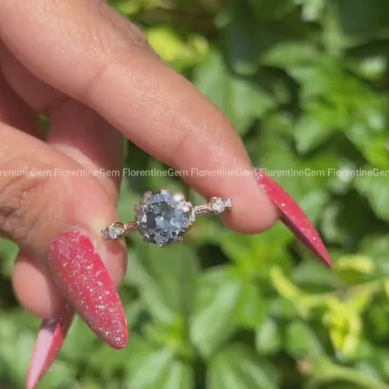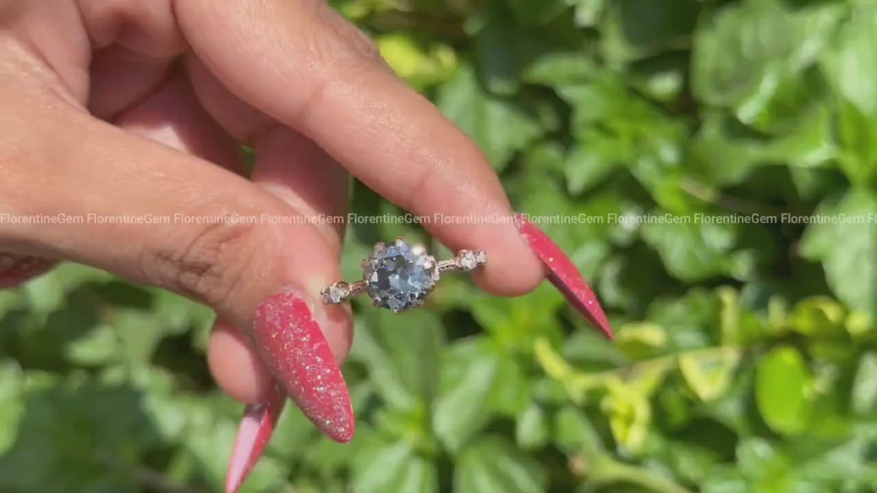 Dark Gray Round OEC Moissanite Engagement Ring, Hidden halo Vintage Antique Diamond Ring,10K Rose Gold Unique Prong Setting Ring, Gift for Her white gold wedding band, wedding band women, wedding band set, wedding, engagement ring, promise ring, moissanite ring, 14k gold ring, rings, art deco ring, promise ring for her, handmade ring, diamond wedding ring, engagement gift