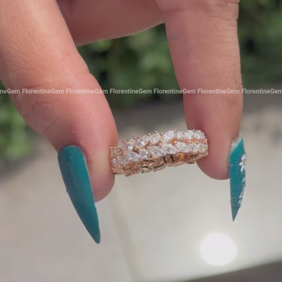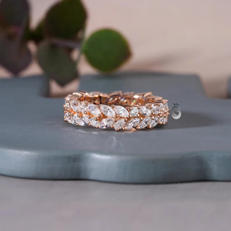 Double Row Marquise Moissanite Eternity Band, 14K Rose Gold Stacking Ring