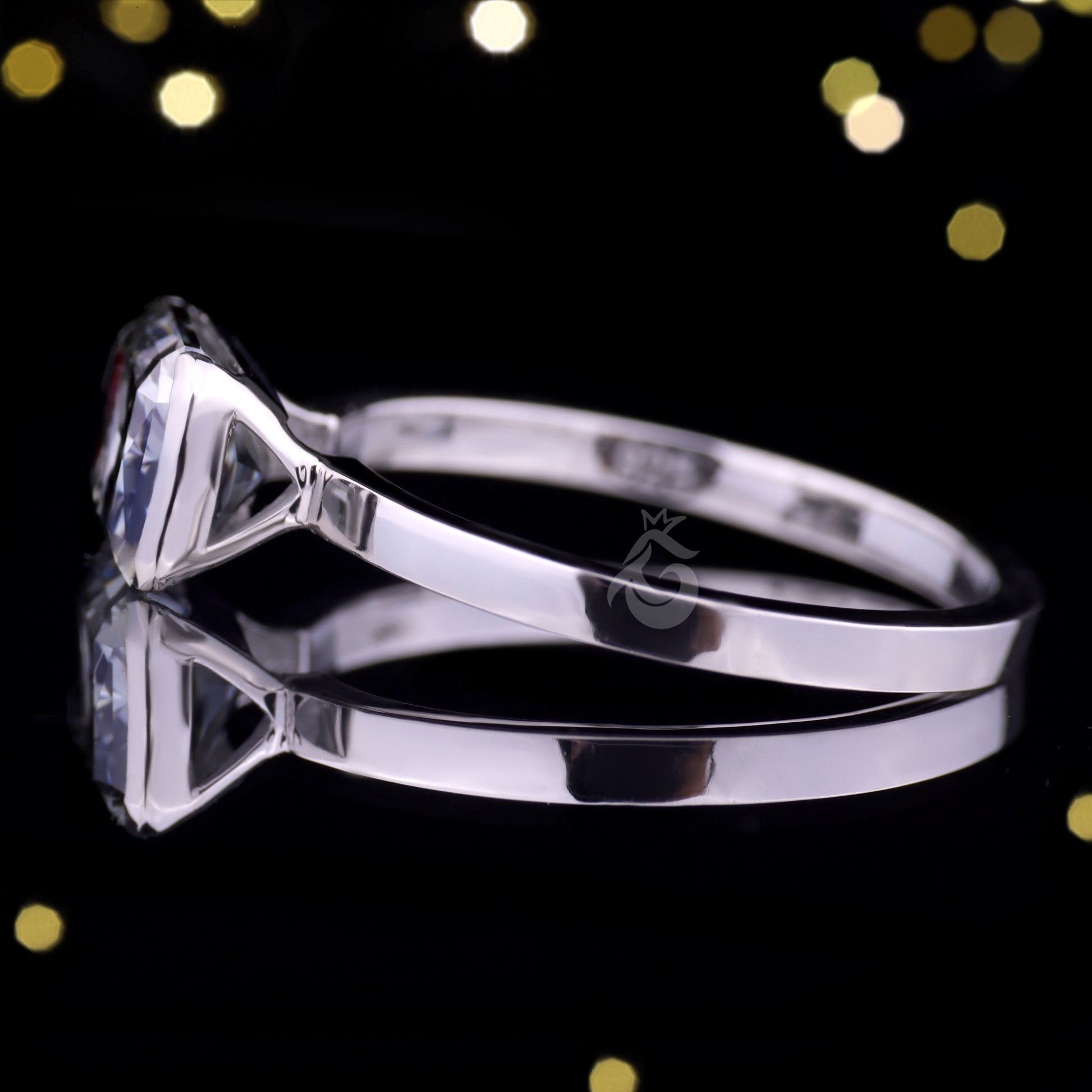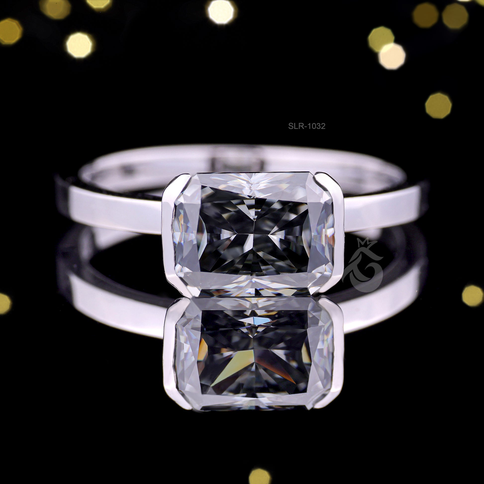 East-West 2.47CT Fancy Gray Radiant Moissanite Ring – 14K White Gold Half Bezel Solitaire Engagement Ring