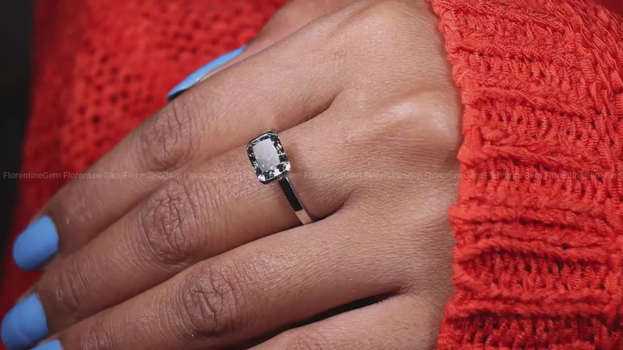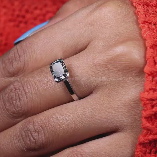 East To West 2.47CT Fancy Gray Radiant Shape Moissanite Engagement Ring Half Bezel Solitaire Wedding Ring,14K White Gold promise Ring for her wedding band, moissanite wedding band, gold wedding band, gold wedding band women, white gold wedding band, wedding band women, wedding band set, wedding, engagement ring, promise ring, moissanite ring, 14k gold ring, rings, art deco ring, promise ring for her, handmade ring, diamond wedding ring, engagement gift