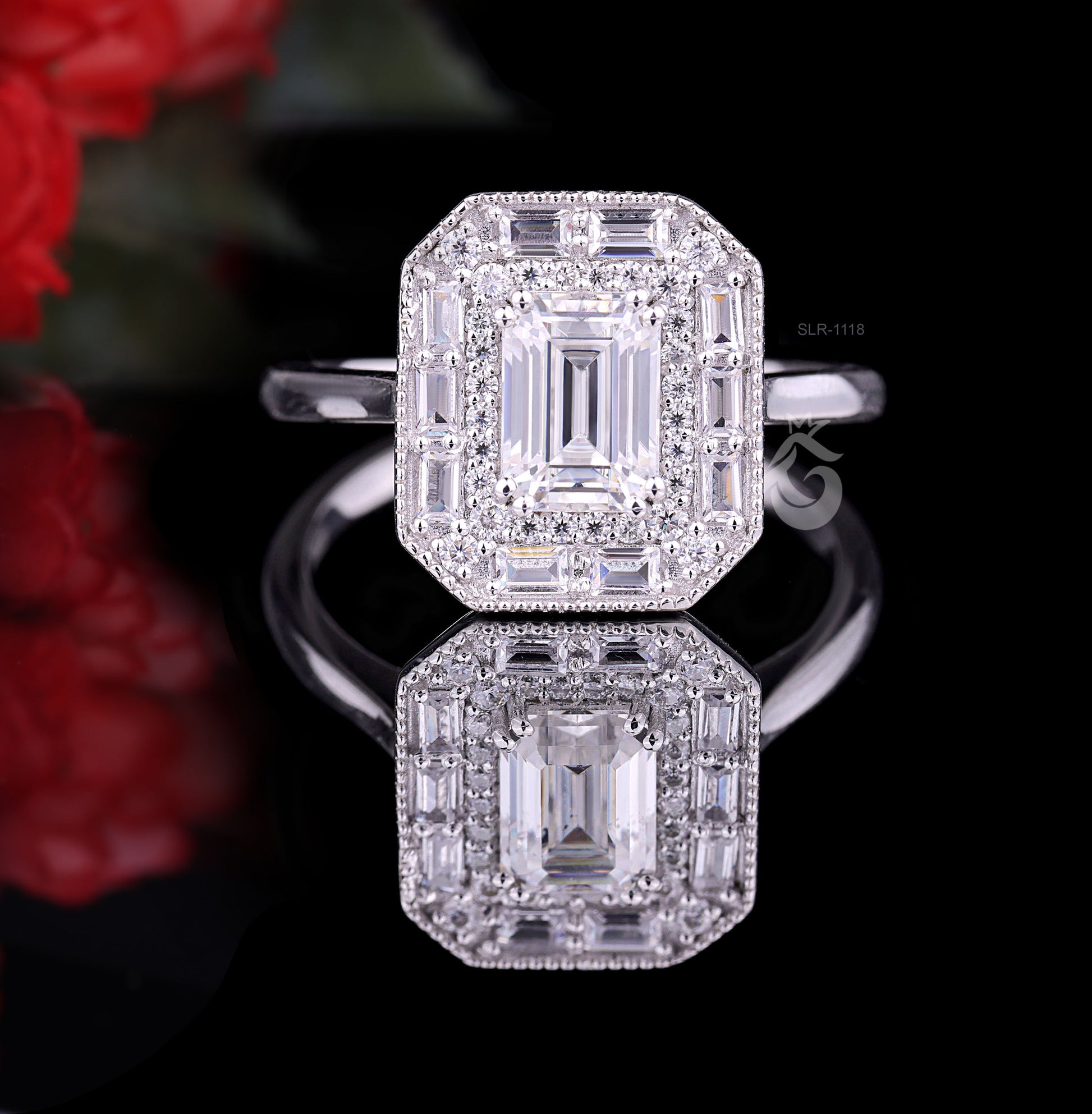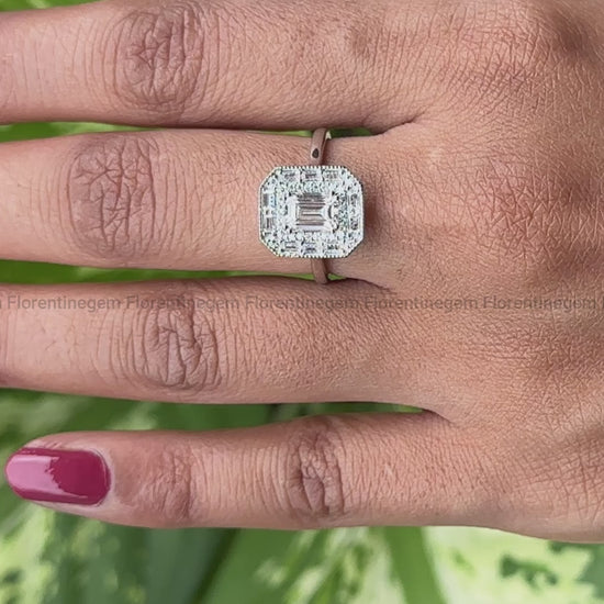 1CT emerald cut moissanite Engagement Ring with side Baguette diamond,10k white gold cluster halo ring, antique handmade wedding ring for her wedding band, moissanite wedding band, gold wedding band, gold wedding band women, white gold wedding band, wedding band women, wedding band set, wedding, engagement ring, promise ring, moissanite ring, 14k gold ring, rings, art deco ring, promise ring for her, handmade ring, diamond wedding ring, engagement gift