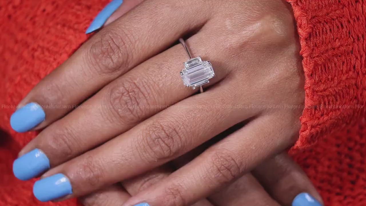 Emerald Cut Three Stone Colorless Moissanite Engagement Ring, 14K Solid Gold Side Baguette Cut Wedding Ring, Proposal Ring, Anniversary Gift, wedding band, moissanite wedding band, gold wedding band, gold wedding band women, white gold wedding band, wedding band women, wedding band set, wedding, engagement ring, promise ring, moissanite ring, 14k gold ring, rings, art deco ring, promise ring for her, handmade ring, diamond wedding ring, engagement gift