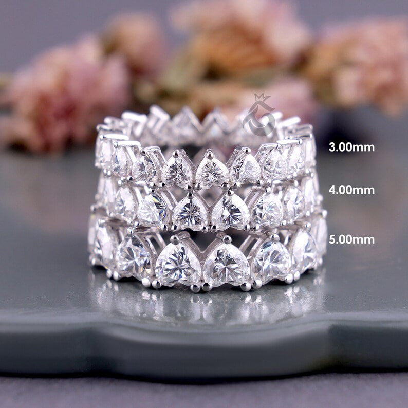 3.50 MM Heart Cut Moissanite Eternity Band, Delicate Wedding Ring for Women