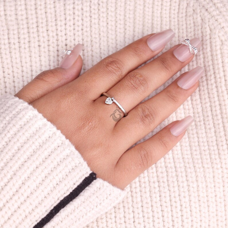 Heart Shape Moissanite Dangle Ring, Bezel Set Solitaire Stacking Diamond Ring
