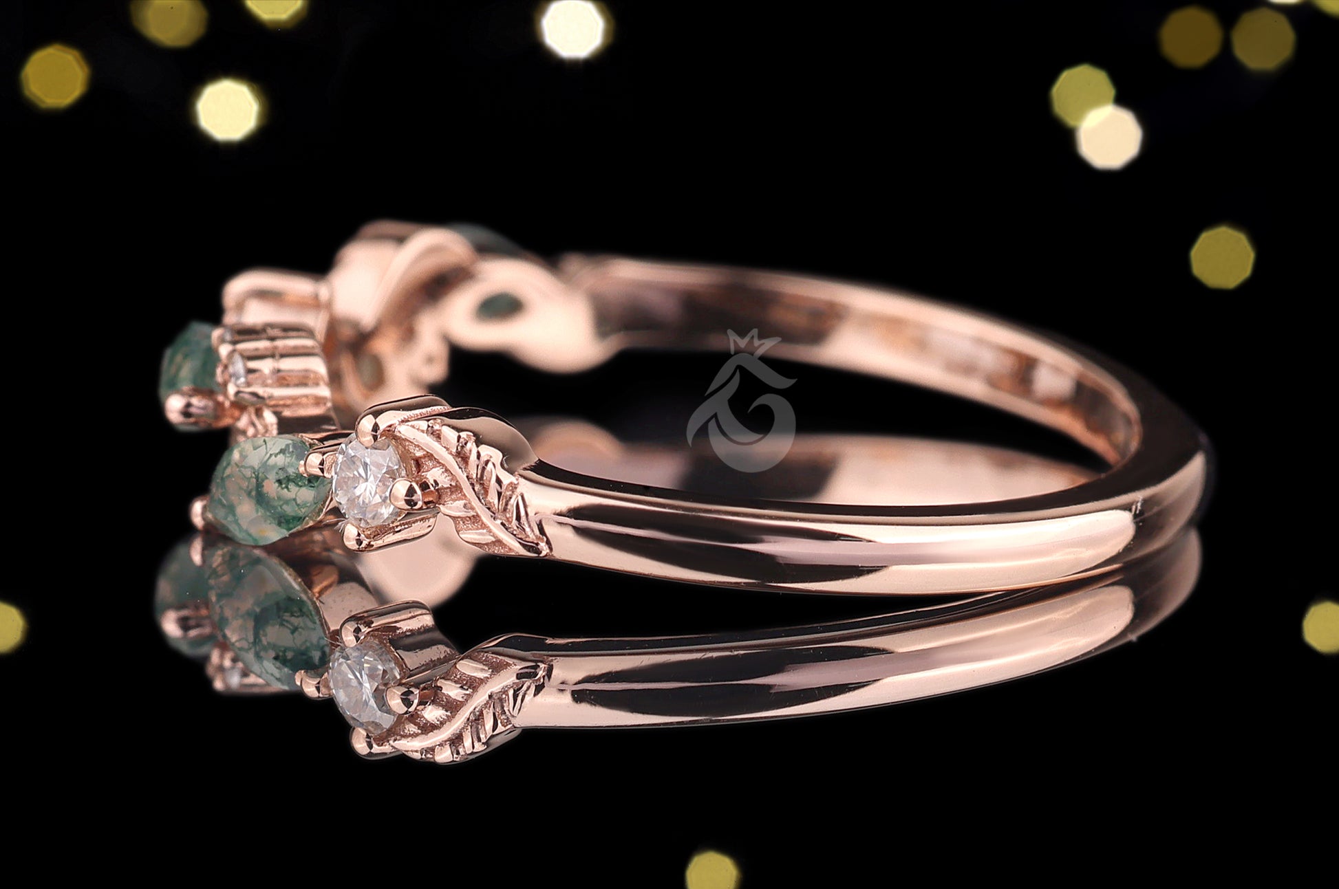 Marquise cut Moss agate Wedding band Solid 10K Rose Gold, Round Moissanite marriage ring Dainty Leaf ring Promise Anniversary wedding band wedding band, moissanite wedding band, gold wedding band, gold wedding band women, white gold wedding band, wedding band women, wedding band set, wedding, engagement ring, promise ring, moissanite ring, 14k gold ring, rings, art deco ring, promise ring for her, handmade ring, diamond wedding ring, engagement gift