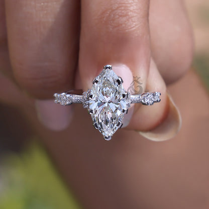 This elegant marquise-cut lab-grown diamond engagement ring features a stunning hidden halo design, enhancing its brilliance with a vintage-inspired touch. Perfect for proposals, anniversaries, or any special occasion, this ring is a timeless symbol of love and commitment. The center stone is a genuine lab-grown diamond, available in sizes ranging from 1.00 CT to 3.00 CT (pictured with 2.50 CT), offering a luxurious yet ethical choice for fine jewelry lovers.