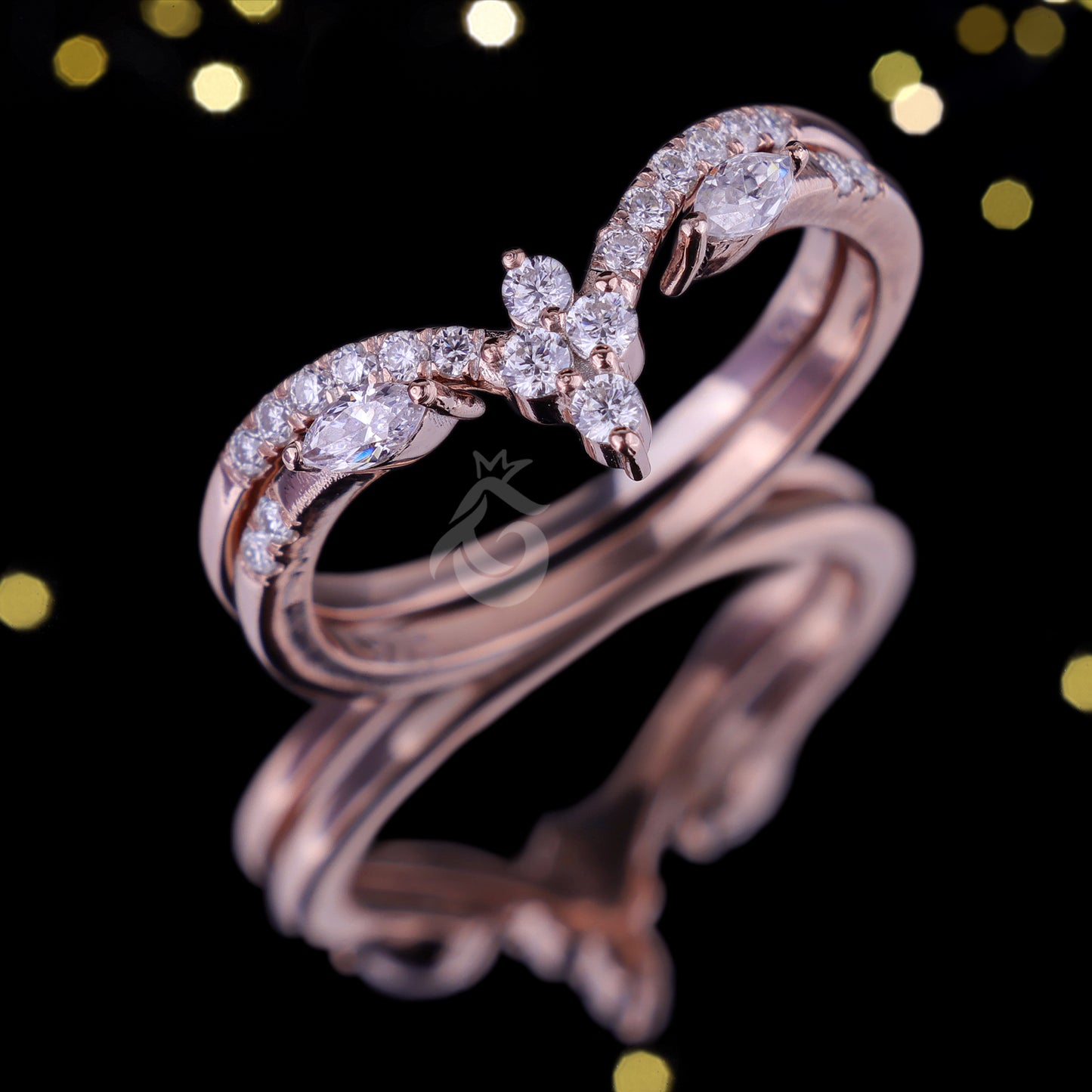 Marquise Cut Moissanite Curved Bridal Ring Set, Chevron Double Wedding Ring Set, Rose Gold Vine Leaf Delicate Moissanite Anniversary Ring Set, wedding band, moissanite wedding band, gold wedding band, gold wedding band women, white gold wedding band, wedding band women, wedding band set, wedding, engagement ring, promise ring, moissanite ring, 14k gold ring, rings, art deco ring, promise ring for her, handmade ring, diamond wedding ring, engagement gift