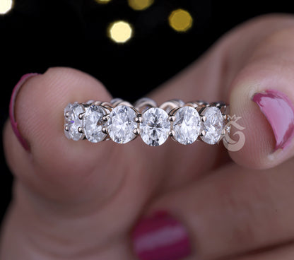 Oval Moissanite Full Eternity Ring, Stackable Wedding Band, 925 Sterling Silver Anniversary Ring