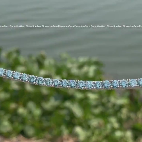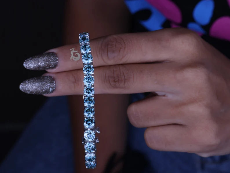 Blue Moissanite Tennis Bracelet – 10K White Gold Bridal Jewelry